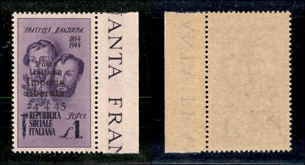 1945 - 1 lira Bandiera (14c) senza trattino dopo 4 - gomma integra (150)
