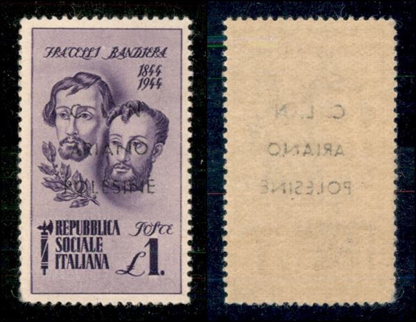 1945 - 1 lira Bandiera (Errani 45aa varietà) con decalco + N senza punto - soprastampa evanescente - gomma integra