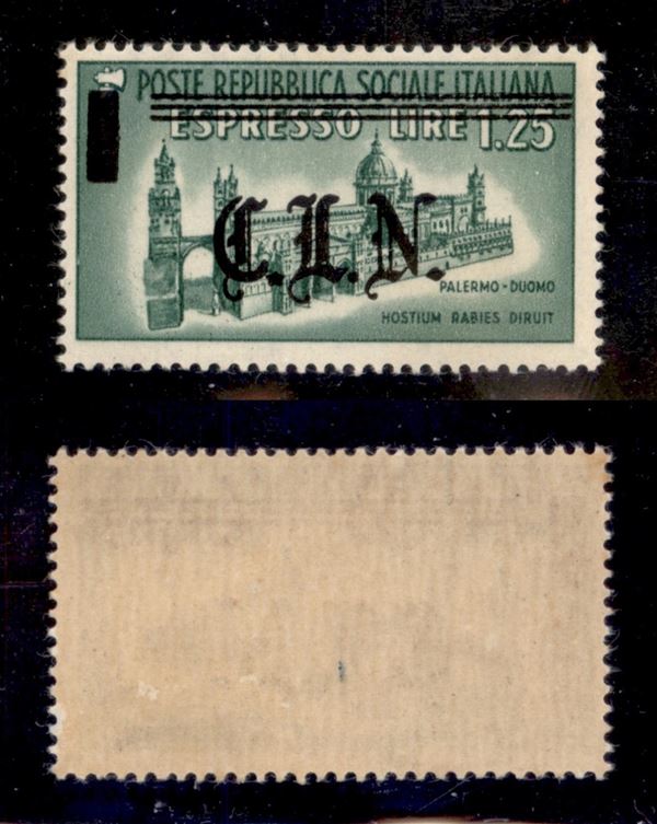 1945 - 1,25 lire Espresso (Errani 17 varietà b) con soprastampa spostata in basso - gomma integra - non catalogato