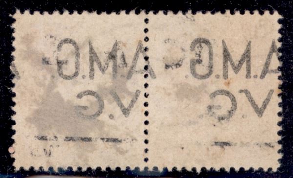 1945 - 2 lire Imperiale (9 hk + p) - coppia orizzontale con soprastampe spostate a sinistra + decalco - usati