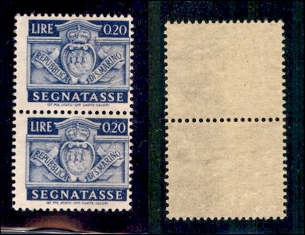 1945 - 20 cent (68d) - coppia verticale su carta ricongiunta - gomma integra (2.200)