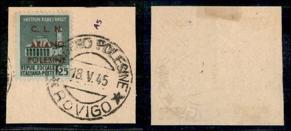 1945 - 25 cent (Errani 32A) usato su frammento - cert. AG