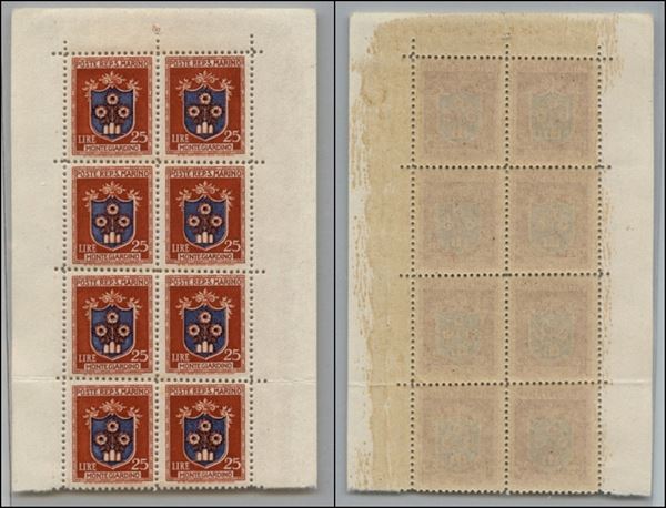 1945 - 25 lire Stemma (294) - blocco di otto - gomma integra (200+)