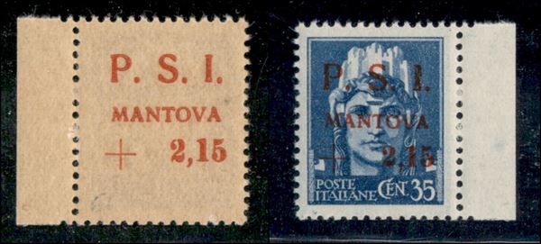 1945 - 35 cent + 2,15 lire (3aa) bordo foglio - soprastampa recto verso - gomma integra (900)