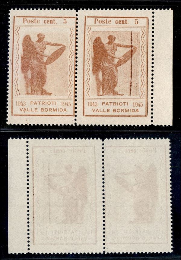 1945 - 5 cent Vittoria (9da) stampa evanescente - coppia orizzontale bordo foglio - virgola a sinistra (varietà m) - sempre senza gomma