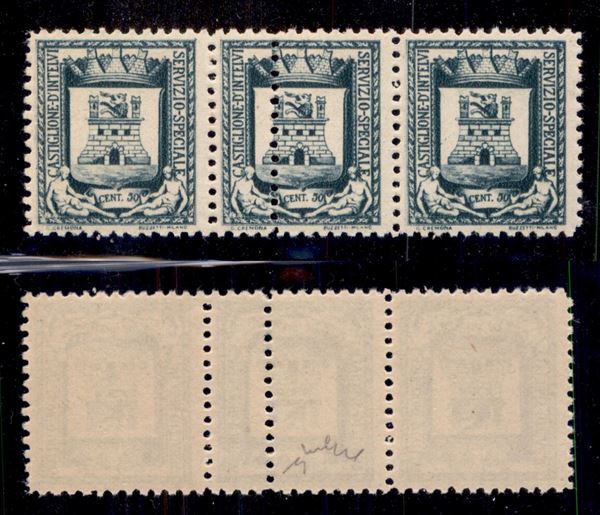 1945 - 50 cent (14/14e/14) - striscia orizzontale di 3 con doppia dentellatura al centro - gomma integra - Chiavarello (830+)