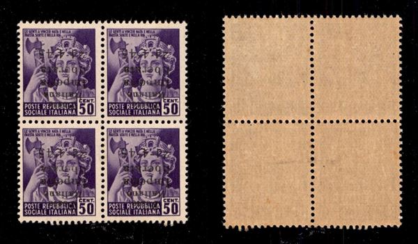 1945 - 50 cent (6a) in quartina con soprastampe capovolte - gomma integra (800+)