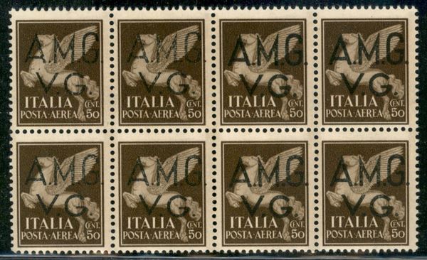 1945 - 50 cent Aerea (1) - blocco orizzontale di otto - soprastampa lievemente evanescente nella quartina di sinistra - gomma integra