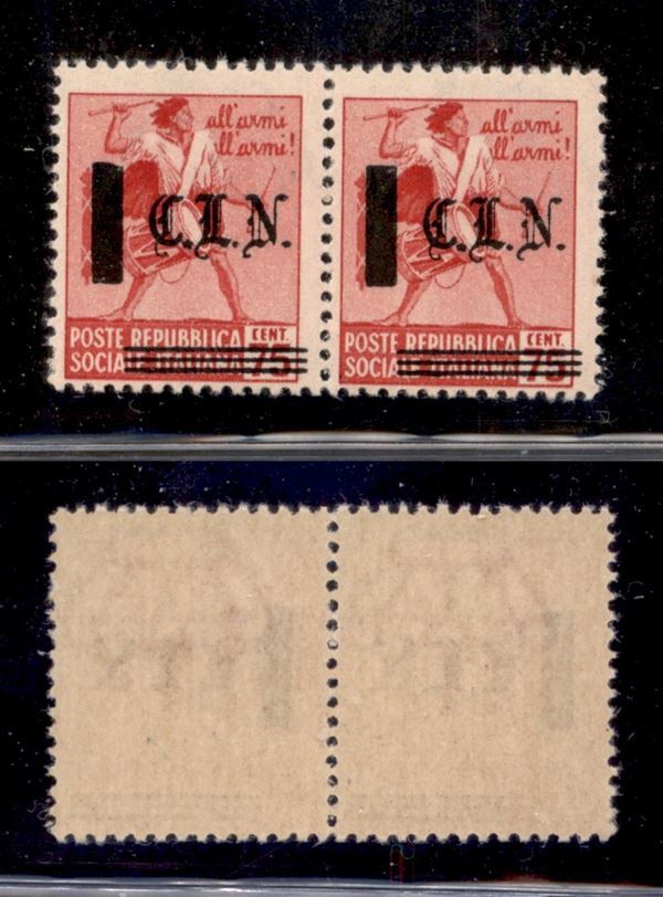 1945 - 75 cent (Errani 10) - coppia orizzontale con soprastampe oblique - gomma integra - non catalogati