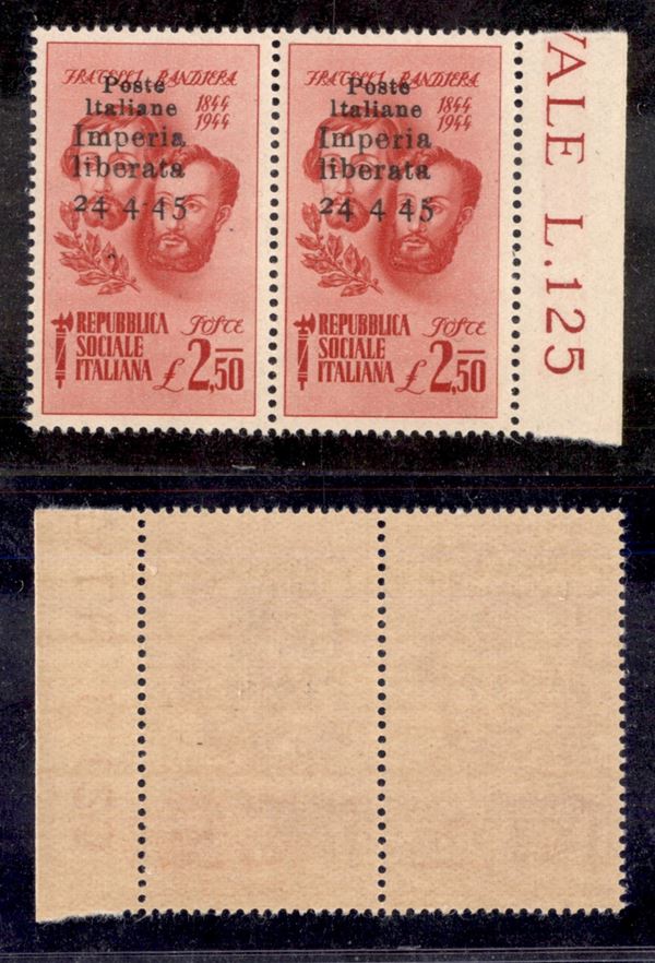 1945 - Coppia del 2.50 lire Bandiera (15b + 15d) - bordo foglio - gomma integra (465++)