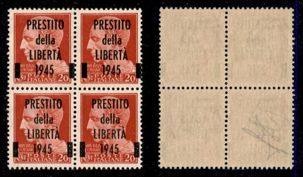 1945 - Prestito della Libertà - 20 cent Imperiale (Unificato 1) in quartina - gomma integra
