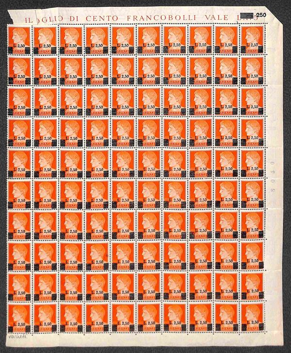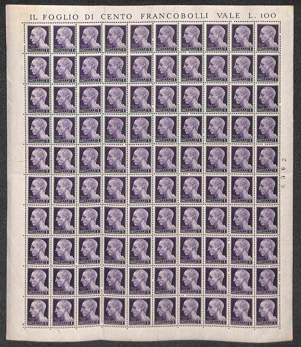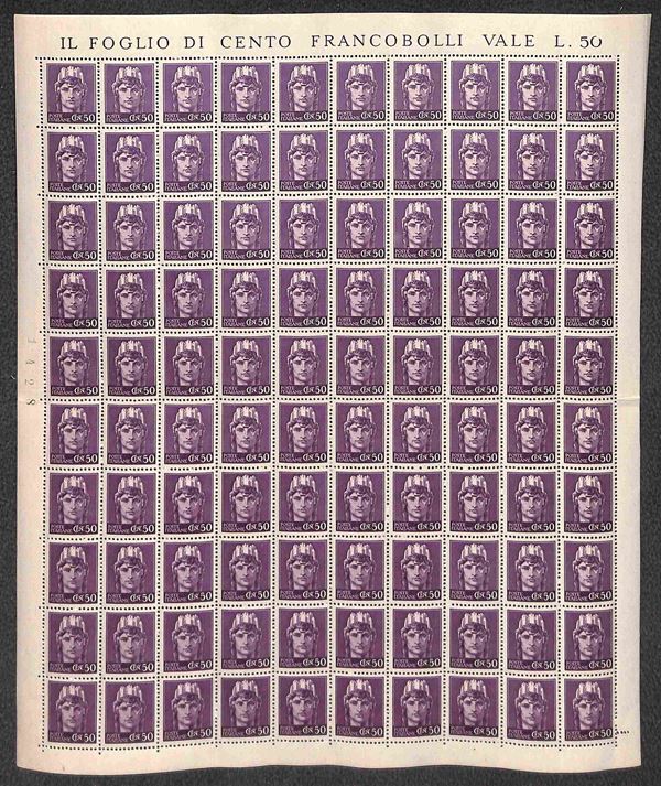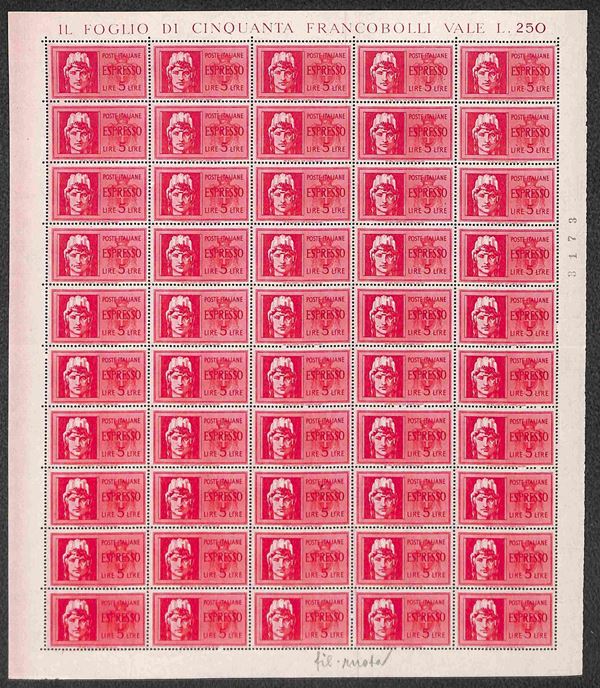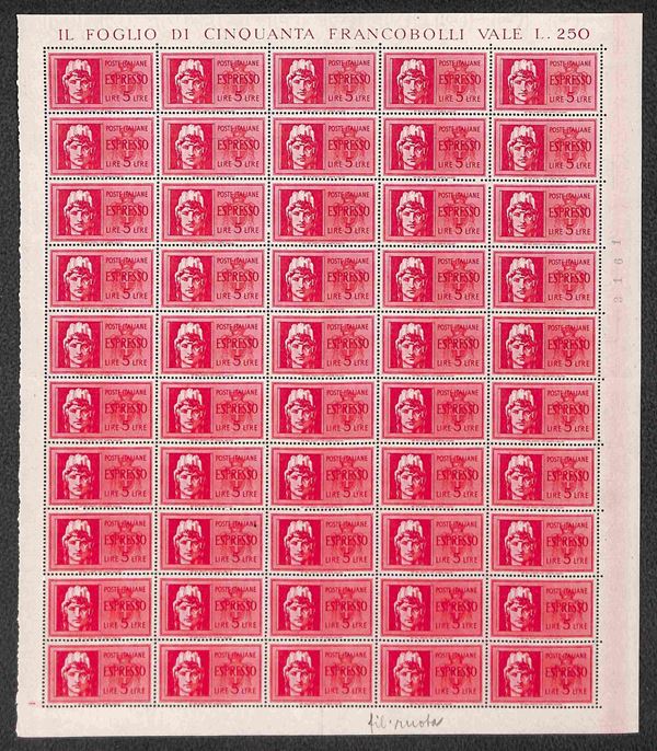 1945 - Sei valori (523 + 525 + 528 + 531 + 538 + Espressi 24) in fogli di 100 (Espresso 2 x 50) - gomma integra