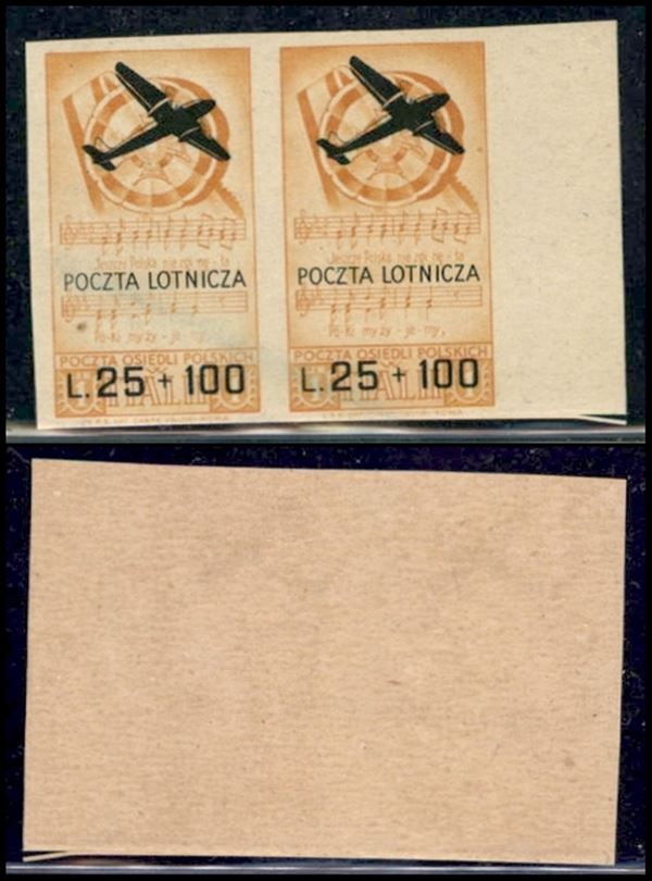 1946 - Coppia del 25 lire + 100 (3a - aerea) non dentellata - bordo foglio - gomma integra (600+)