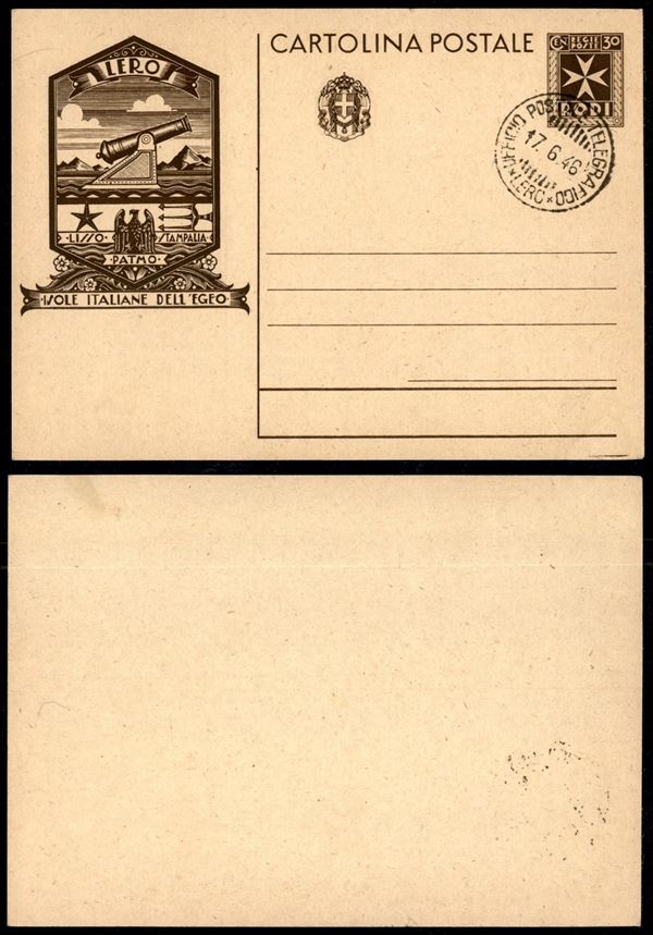 1946 (17 giugno) - Lero/Ufficio Postale Telegrafico - cartolina postale da 30 cent (C1/2 - Patmo)