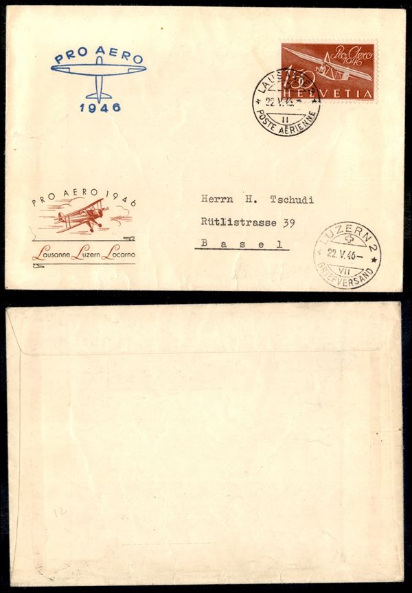 1946 (22 maggio) - Pro Aereo Losanna Lucerna - aerogramma per Basilea