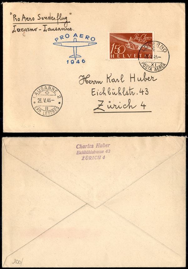 1946 (23 maggio) - Pro Aereo Locarno Losanna - aerogramma per Zurigo