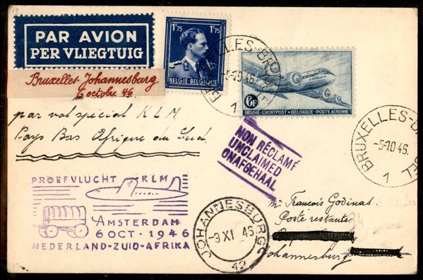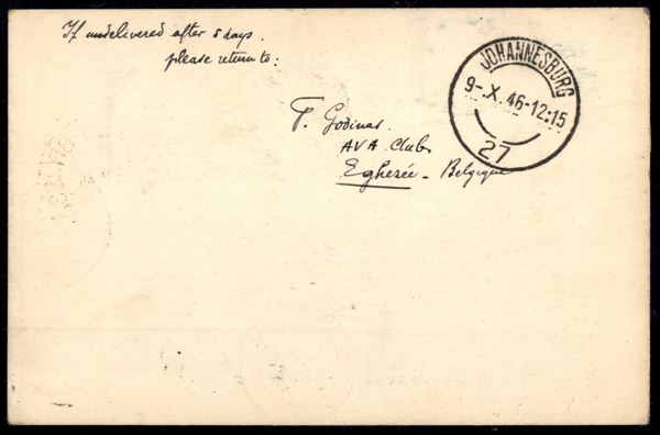 1946 (6 ottobre) - Olanda Sud Africa - aerogramma da Bruxelles a Johannesburg