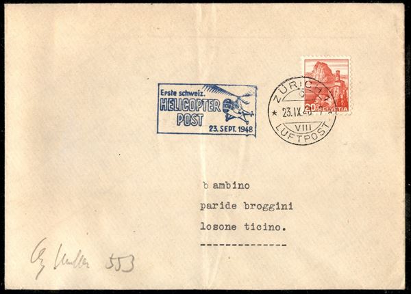 1948 (23 settembre) - Helicopter Post - aerogramma da Zurigo