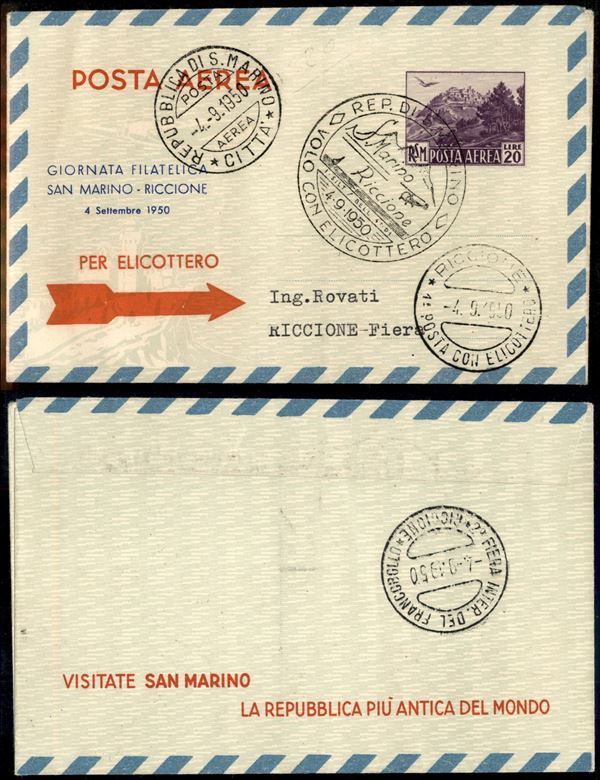 1950 (4 settembre) - San Marino Riccione per Elicottero - Biglietto postale da 20 lire (A3)