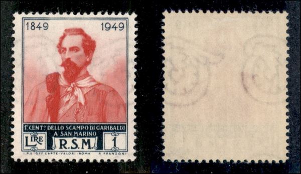 1952 - 1 lira Garibaldi (358/I) - ruota terza - gomma originale (175 linguellato)