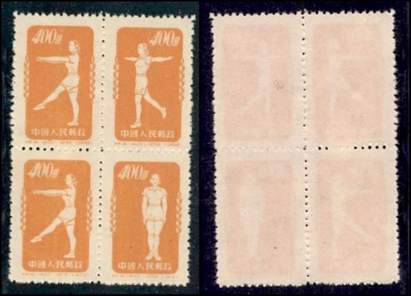 1952 - 400 yuan Ginnastica (164/166) - quartina prima emissione - senza gomma (200)
