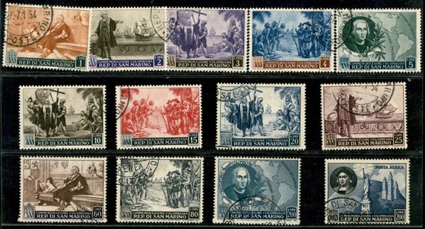 1952 - Commemorazione Colombiana (372/383+101 aerea) - emissione completa - usati