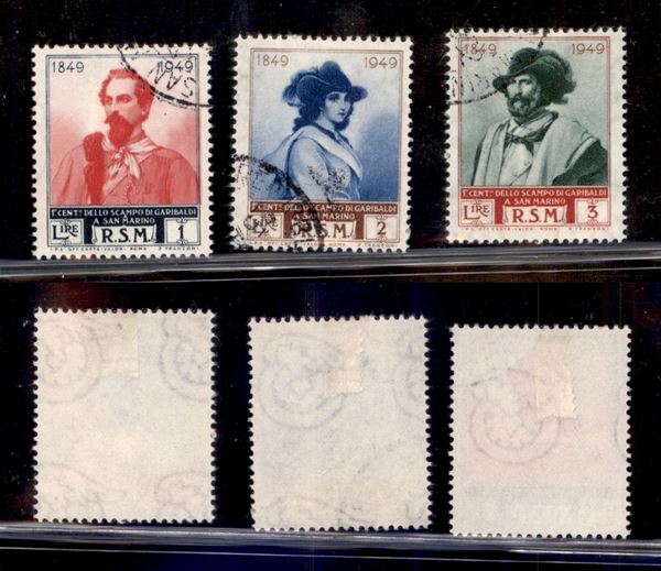 1952 - Ruota Terza - Garibaldi (358/I + 359/I + 360/I) - 3 valori usati (1.000+)