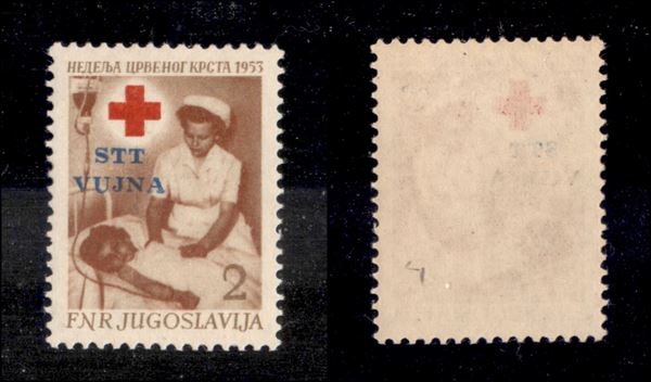 1953 - 2 din Croce Rossa (93 a) - doppia croce - gomma integra - cert. BPP (250)