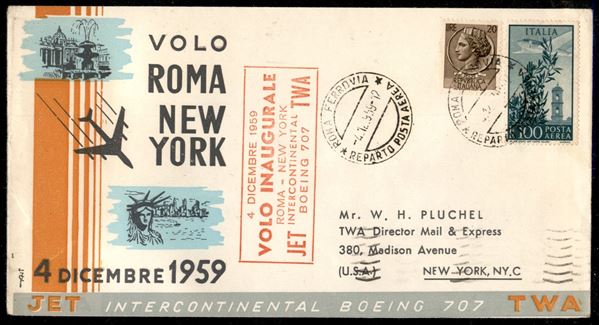 1959 (4 dicembre) - Roma New York - Boeing 707/Volo Inaugurale - aerogramma del volo