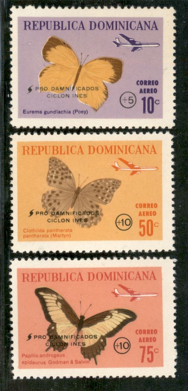1966 - Farfalle Posta Aerea soprastampati Pro Damnificados Ciclon Ines (881/883) - 3 valori della serie - gomma integra