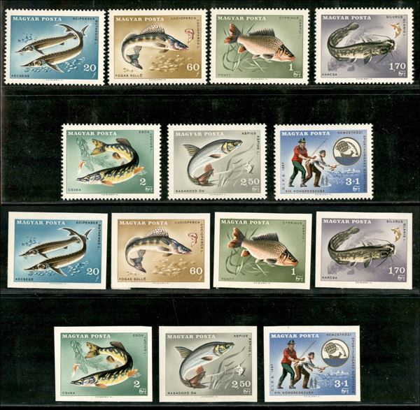1967 - Pesci (CISP) - (2344/2350 A+B) - serie completa - dentellati e non - gomma integra - lievi aderenze sulla gomma dei non dentellati