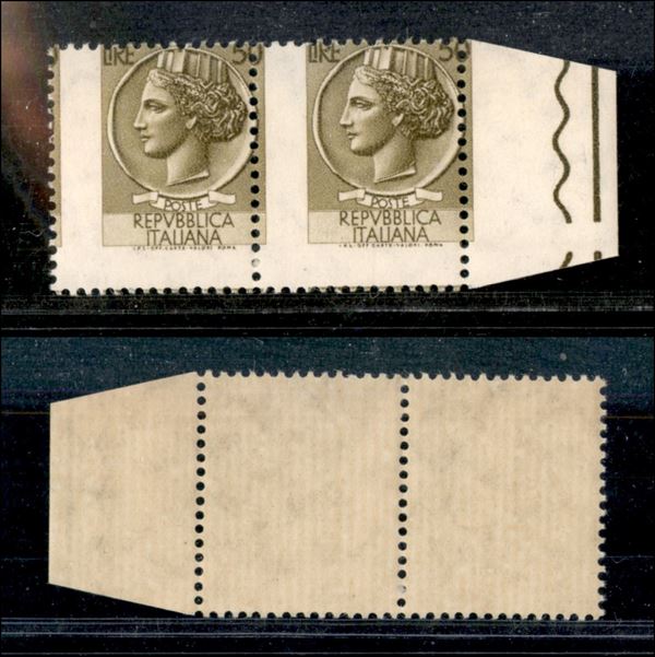1968 - 50 lire Turrita (1076m) - coppia bordo foglio con dentellature spostate - gomma integra (180+)