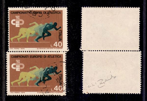 1974 - 40 lire Atlantica (1260) - coppia verticale - salto del pettine - cert. Raybaudi