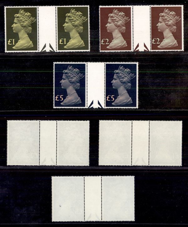 1977 - Elisabetta II Machin (732/734) - serie completa in coppie orizzontali con interspazio al centro - gomma integra
