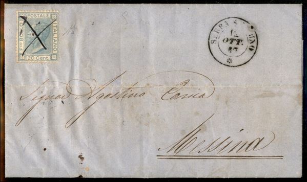 20 cent (26) annullato con croce a penna - lettera da Serra S. Bruno a Messina del 12.10.67 - Diena