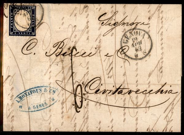 20 cent (2a) su lettera da Genova a Civitavecchia del 19.4.62 - tassata