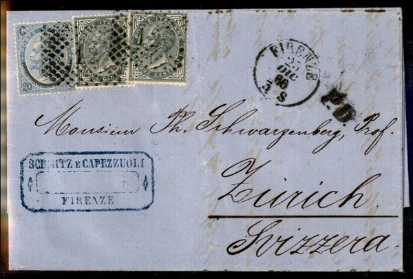 20 cent su 15 (25) + due 5 cent De La Rue (16) - lettera da Firenze a Zurigo del 23.12.66