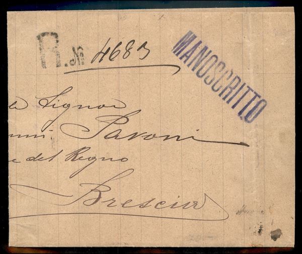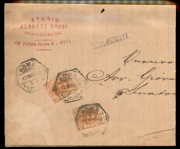 20 cent Umberto (61) - fascetta raccomandata da Roma a Brescia del 17.11.96 con doppia affrancatura