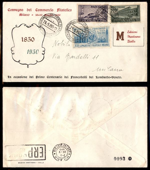 20 lire Salone (617) + 20 lire Unesco (618) - busta per cittą - Milano 28.5.50