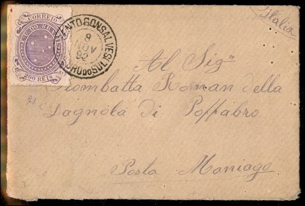 200 reis (89) su bustina da Pedro do Sul a Maniago del 8.11.92