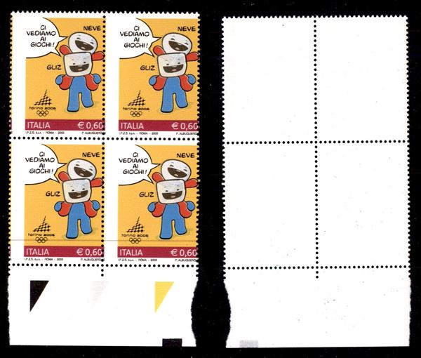 2005 - 60 cent Torino 2006 (2811) in quartina - dentellatura verticale spostata - gomma integra