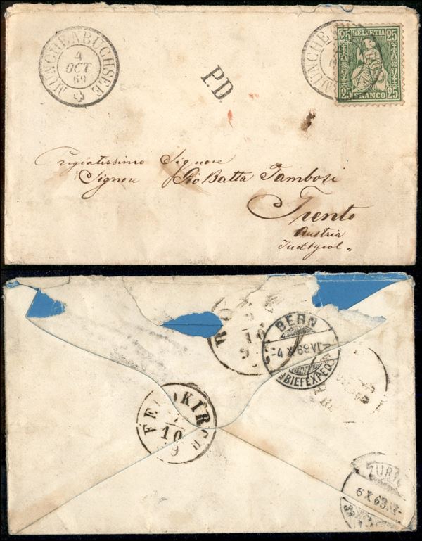 25 cent (32) su bustina da Munchenbuchsee a Trento del 4.10.69