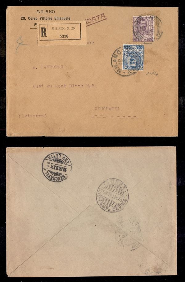 25 cent (73) + 50 cent (76) - raccomandata da Milano a Neuchatel del 12.9.07
