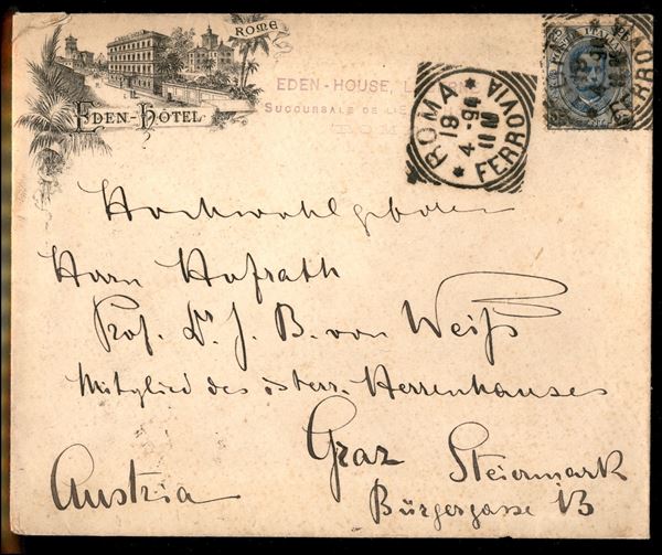 25 cent Umberto (62) - busta illustrata Eden Hotel Rome (+ "Eden House Lucerne") da Roma a Graz del 18.4.94