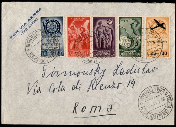 25 lire (3 - Aerea) + complementari (23/26) su aerogramma da Barletta a Roma del 10.4.46