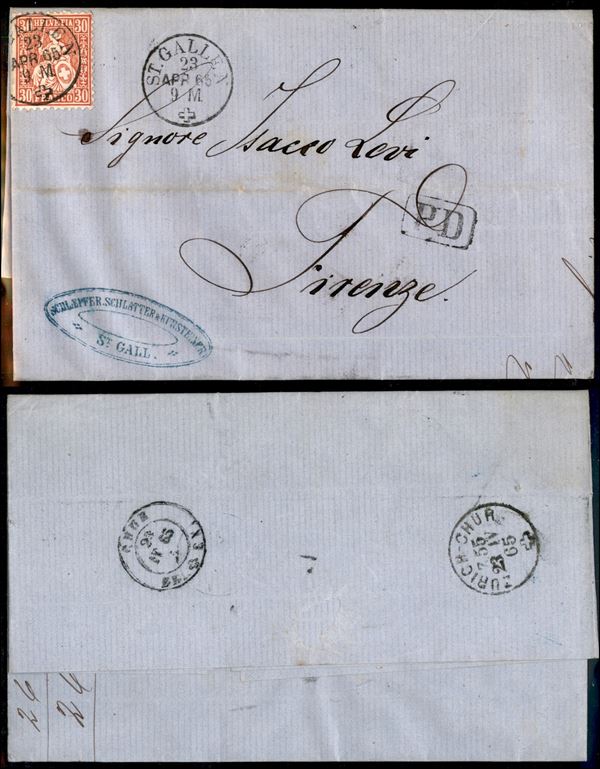 30 cent (25) su lettera da St. Gallen a Firenze del 23.4.65
