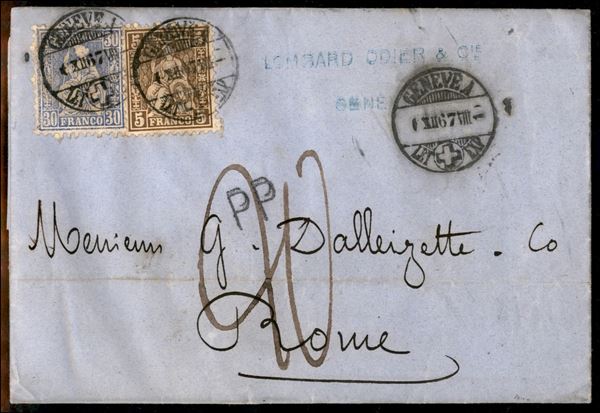 30 cent (33) + 5 cent (22) - lettera da Ginevra (PP) a roma del 27.12.67