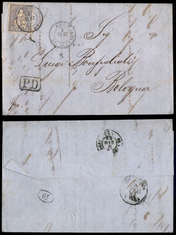 30 cent (33) su lettera da Chur a Bologna del 3.6.67