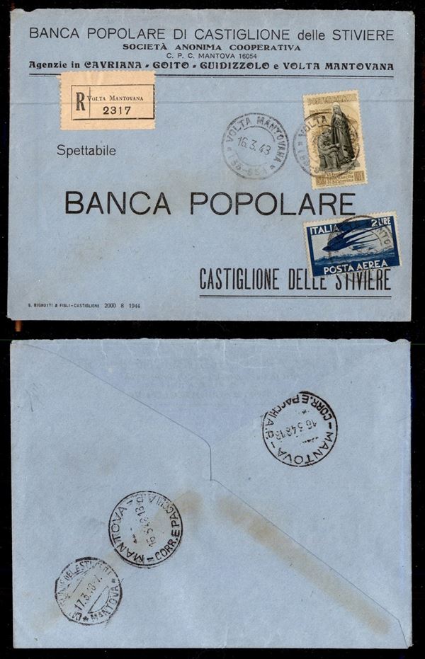 30 cent S. Caterina (577) + complementare (127 - Aerea) su raccomandata da Mantova a Castiglione del 16.3.48