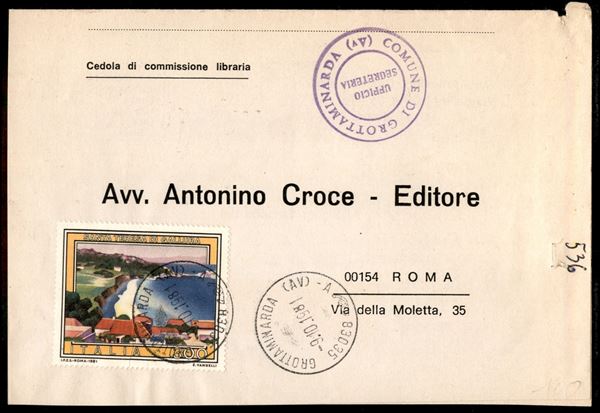 300 lire S. Teresa di Gallura (1564) isolato su cedola di commissione da Grottaminarda a Roma del 9.10.81